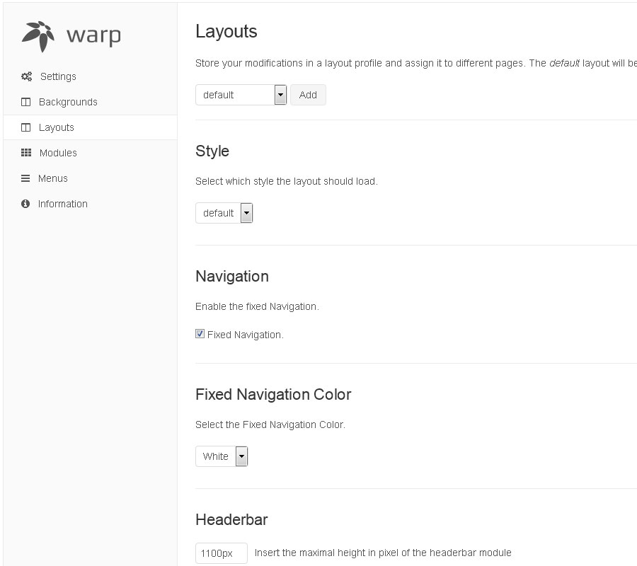The general theme section allows you to control the behaviour and the overall appearance of your theme.